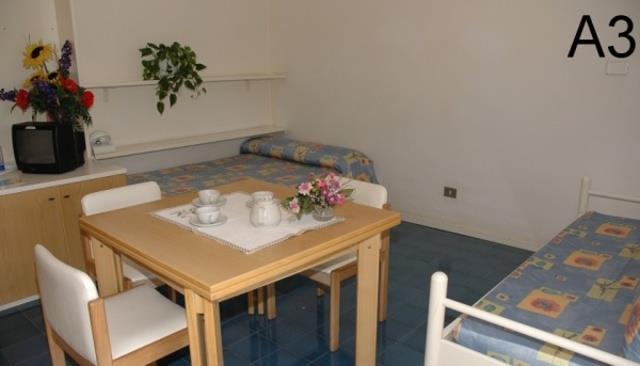 A3: (28 m2, max. 2 dospělé osoby + 1 dítě do 12 let) studio (jedna místnost) s rozkládacím dvojlůžkem a jedním lůžkem (gauč), kuchyňský kout. |