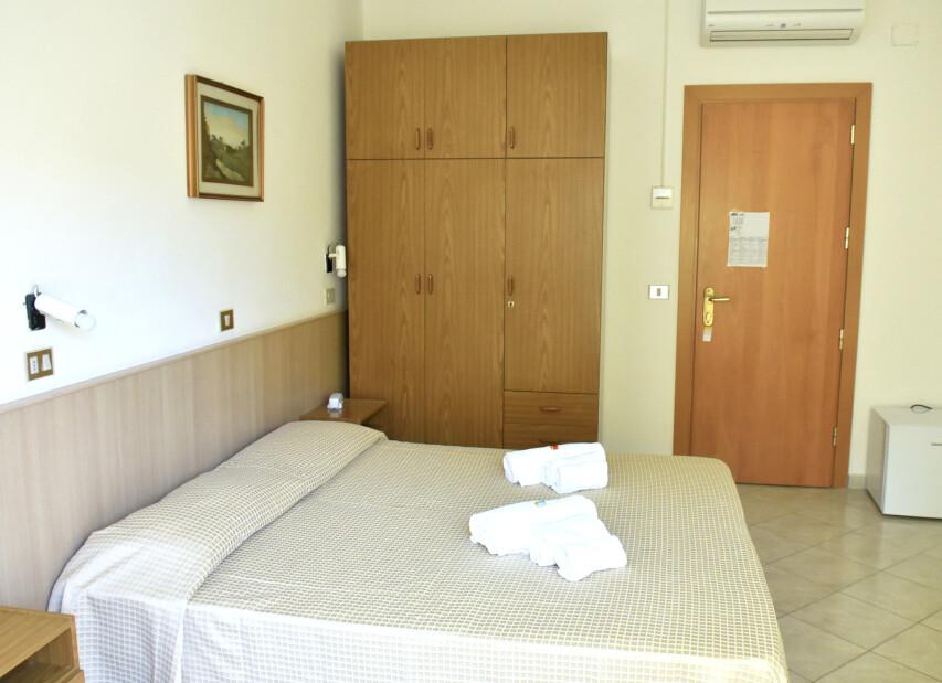 pokoj s manželskou postelí, případně s jednou nebo dvěma přistýlkami. 3. a 4. lůžko je vždy patrová postel, hlavní budova, 1. a 5. patro, balkon, na vyžádání, výhled na moře, na vyžádání, přímý, 450 Kč/pokoj/den, boční, 300 Kč/pokoj/den, klimatizace, někde také stropní ventilátor, moderní vybavení, bez patrových postelí, TV, Wi-Fi na pokoji, trezor, telefon, lednice, sprcha nebo vana, fén, parkovací místo, omezená kapacita, 8 €/den v období do 07.08. a od 23.08., 10 €/den v období 08.08. - 22.08.2026, na vyžádání, nástupní dny kdykoli, min. pobyt v období do 20.06. a od 06.09. min. 3 noci, 20.06. - 06.09. min. 7 nocí, příjezd od 15:00 do 19:00, odjezd od 08:00 do 10:00