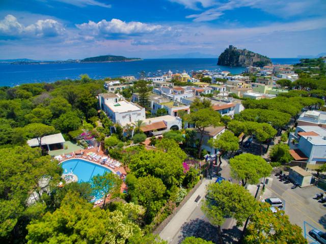 Velmi oblíbený hotel u klientů, kteří vyhledávají dovolenou v atraktivním prostředí nedaleko městeček Ischia Ponte a Ischia Porto. Výhodou je umístění uprostřed středomořské zahrady u piniového parku, které dodává hotelu poklidnou atmosféru. |