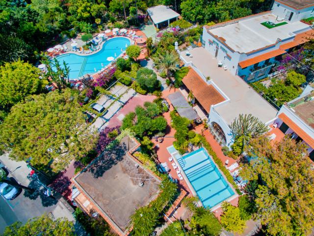 Velmi oblíbený hotel u klientů, kteří vyhledávají dovolenou v atraktivním prostředí nedaleko městeček Ischia Ponte a Ischia Porto. Výhodou je umístění v exotické zahradě u piniového parku, které dodává hotelu velmi poklidnou atmosféru. |